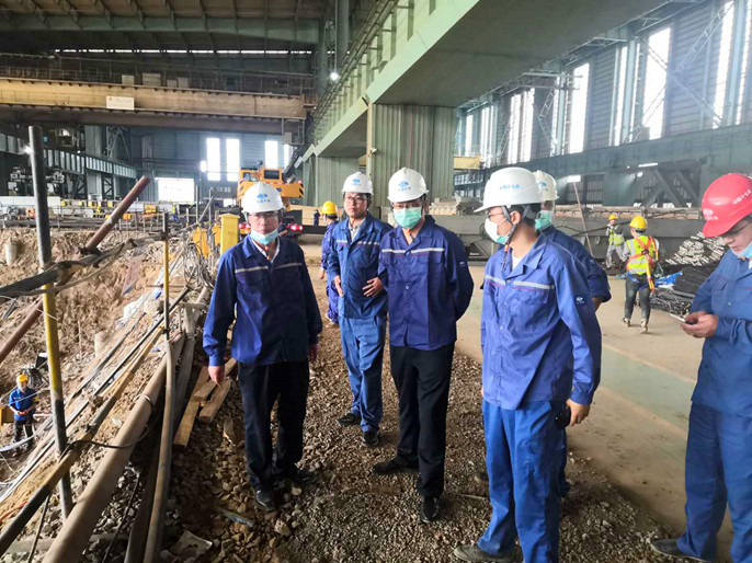 5月13日上午,十七冶副总工程师、冶金分公司经理周金龙到宝钢湛江项目检查指导工作,公司副经理、项目负责人贾正国等陪同参加。