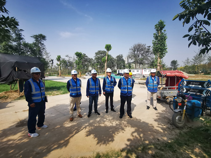 王志强总监一行先实地查看了施工现场安全环保措施,并认真听取了项目负责人对项目安全环保、文明施工、疫情防控等情况汇报,并对项目安全环保工作情况给予了肯定。并提出,一是目前工程处于收尾阶段,项目部需做好人员控制工作,关注作业人员工资发放情况;二是关注露天作业的防暑降温工作及防溺水工作。