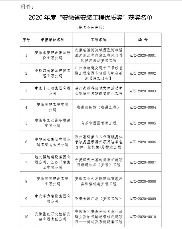 7月8日,安徽省安装和机械设备协会公布了2020年度“安徽省安装工程优质奖”获奖名单,十七冶承建的滁州高教科创城文体活动中心工程成功上榜,荣获“安徽省安装工程优质奖”。