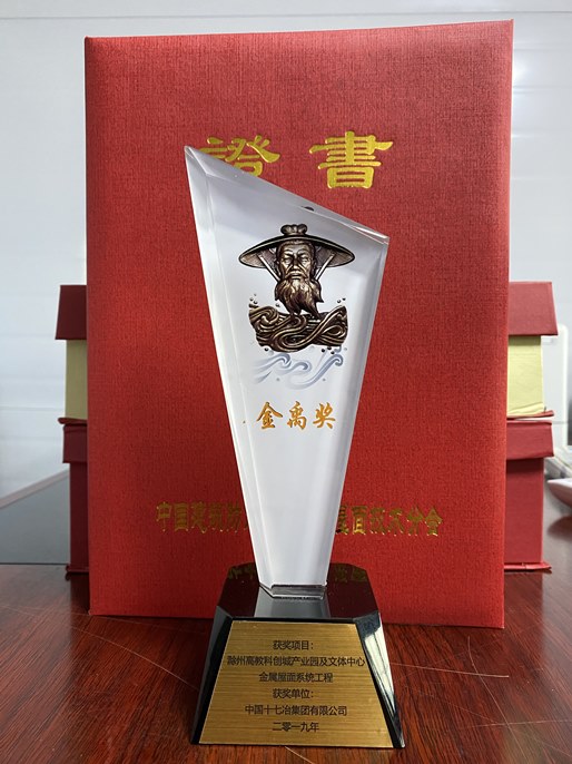 7月12日,由十七冶承建的滁州高教科创城文体活动中心项目部收到了由中国建筑防水协会寄出的“金禹奖”奖杯及奖状。