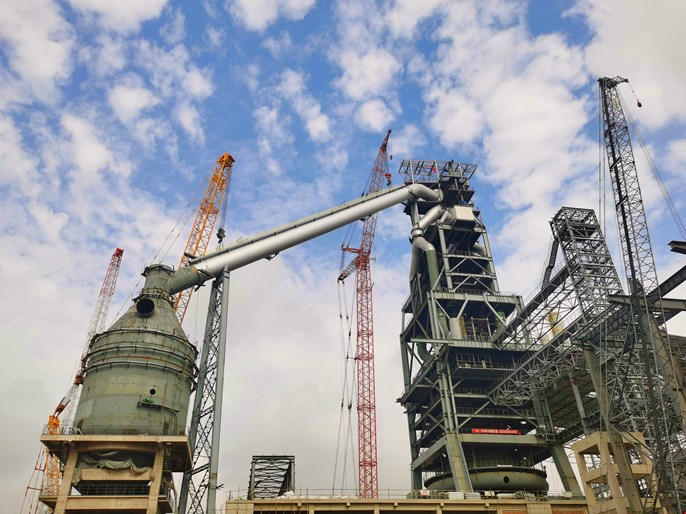 7月17日下午,由中国十七冶集团冶金分公司承建安装的河钢3000立方米高炉下降管缓缓起钩,这一重达160吨的特大异型构件成功实施高空就位。