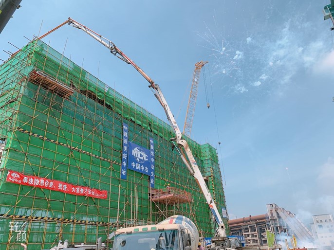 7月28日上午,中国十七冶集团宝钢德盛新炼钢项目碳钢转炉AOD电气室主控楼主体结构顺利封顶。