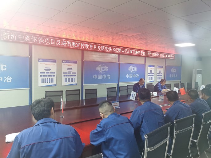 9月21日,公司纪委书记韩斯明代表公司纪委前往新沂中新钢铁项目讲授廉政月专题党课。党课以《正确认识反腐倡廉的形势——把作风建设引向深入》为题,分别从反腐败斗争压倒性态势正在形成;现阶段反腐倡廉面对的主要问题;从严治党、深入反腐败的若干趋势;落实两个责任,做好当前工作等方面进行了具体阐述。强调广大党员干部要以身作则,自觉远离腐败;要时刻保持对腐败的高度警惕;要始终坚持党的理想信念,坚持立根固本;要牢固树立规矩意识、严以修身;要努力保持思想观念和思维方式的正确。