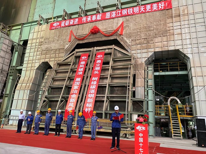 9月26日上午9点48分,中国十七冶集团承建的宝钢湛江钢铁三高炉系统炼钢工程4#转炉依次模拟生产状态顺利倾动,标志着宝钢湛江钢铁三高炉系统炼钢工程4#转炉主工艺设备进入单体试车阶段。