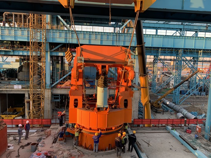 10月23日下午,由中国十七冶集团冶金工程技术分公司承建的徐钢三期炼钢连铸工程大包回转台顺利吊装就位。