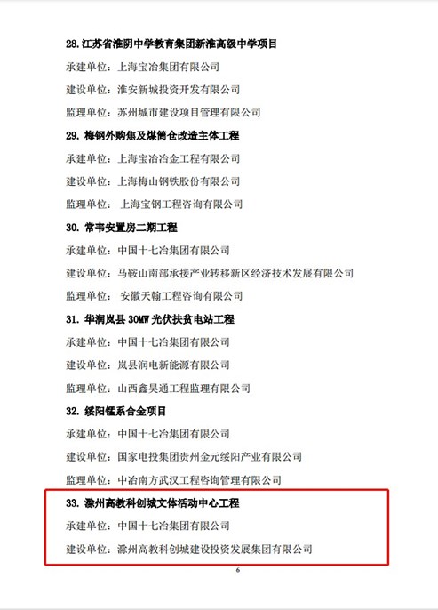 11月24日,中国冶金建设协会公布了2020年度冶金行业工程质量优秀成果奖名单,十七冶承建的滁州高教科创城文体活动中心工程成功上榜,荣获2020年度冶金行业工程质量优秀成果奖。