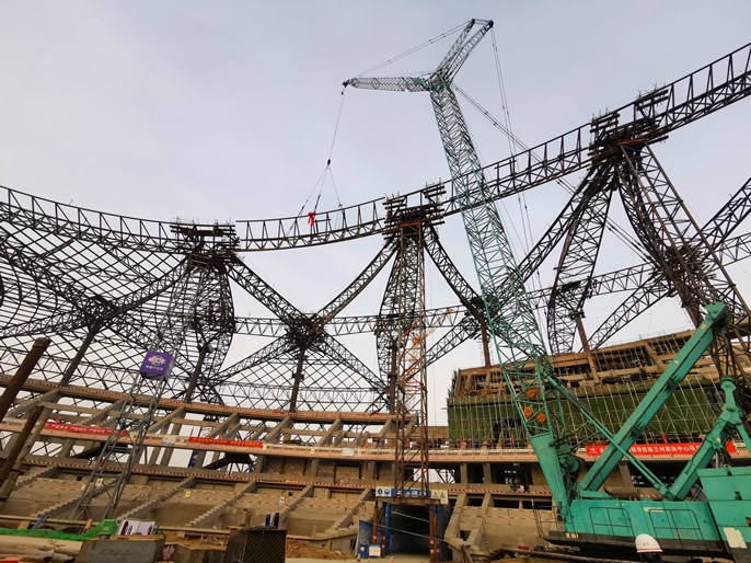 12月18日,中国十七冶集团兰州奥体中心项目体育场罩棚钢结构内环桁架顺利合龙,标志着兰州奥体中心项目体育场工程又一里程碑节点完成。