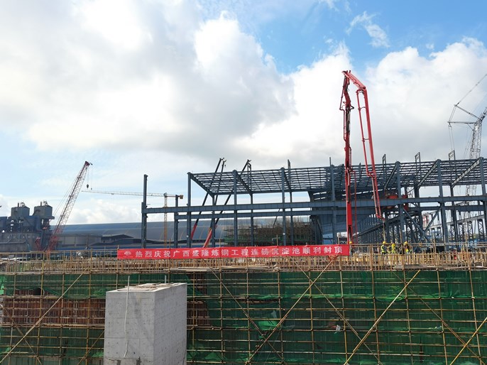 5月8日上午9点30分,由中国十七冶集团冶金工程技术分公司承建的广西盛隆炼钢工程连铸沉淀池顺利封顶。