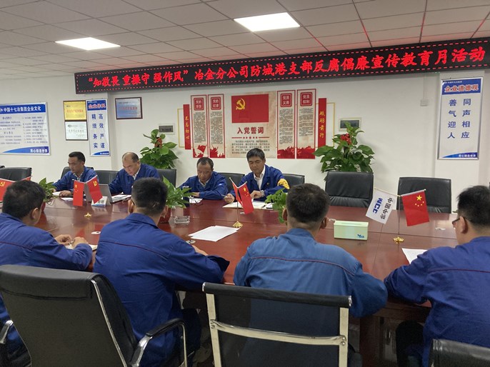9月16日,中国十七冶集团有限公司冶金工程技术分公司党委、纪委在广西防城港炼钢党支部开展反腐倡廉宣传月教育活动。