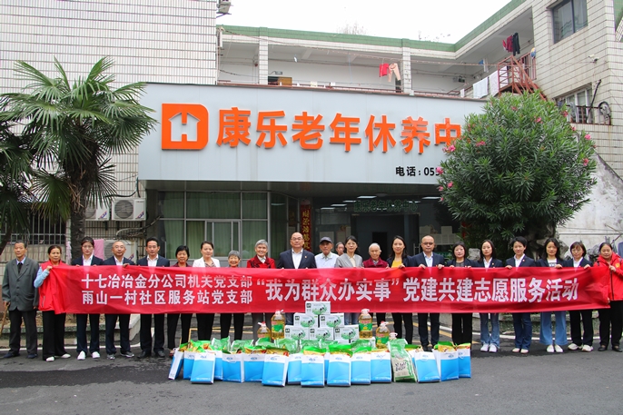 重阳节来临之际,为了给老人们带来一个温馨又特别的重阳佳节,10月11日,中国十七冶集团冶金工程技术分公司机关党支部联合雨山一村社区服务站党支部在雨山康乐老年休养中心开展“我为群众办实事”党建共建志愿服务活动,为老人们送去节日问候和党组织的关爱。