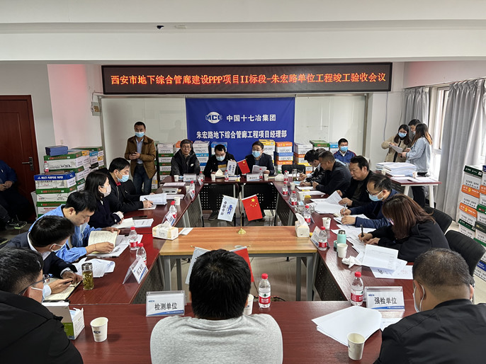 本次竣工验收由西安中冶管廊建设管理有限公司组织,西安市质监站、设计单位、监理单位、勘察单位和施工单位等多方责任主体单位参与。验收小组对朱宏路管廊的各个舱室工程实体观感质量进行了全面检查,对安装工程实体进行了细致的实地抽查、检测,并对内业资料进行了仔细检查。