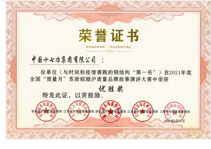 近日,江苏、浙江、安徽、江西、上海四省一市市场监管局联合组织开展的质量品牌故事演讲大赛结果揭晓,中国十七冶集团选送的作品《与时间和疫情赛跑的钢结构“第一吊”》荣获优胜奖。