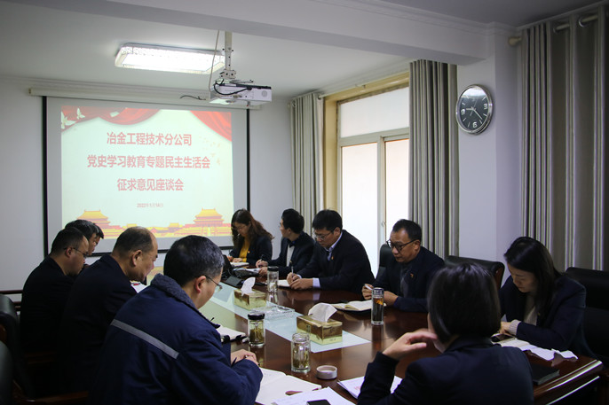 1月14日,中国十七冶集团冶金工程技术分公司党委召开2021年度领导班子民主生活会征求意见座谈会。会议由公司党委书记陈鑫慧主持,十七冶副总经理、冶金分公司经理周金龙,冶金分公司工会主席、纪委书记韩斯明等在马领导班子成员以及机关各部室主要负责人等参加了座谈会。