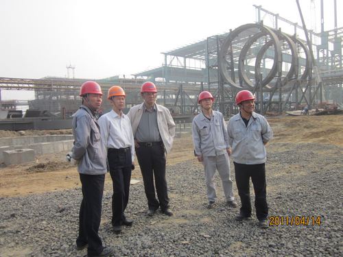 4月14日下午,公司总工程师尹万云在总经理助理、梅山项目部经理王青山的陪同下对梅钢二期公辅工程施工现场进行检查指导。 尹万云总工程师在现场仔细听取了项目部班子成员的汇报后,对梅钢公辅工程在质量、进度方面给予了肯定。他要求项目部继续保持质量连续第一的势头,细化各专业质量管控,做精做细,把“高效严谨、精细务实”的企业作风落到实处,做到工程资料与实体产品同步,安全标化工作常态化管理,使各项工作再上一个新的台阶,满足业主需要,力创精品工程。