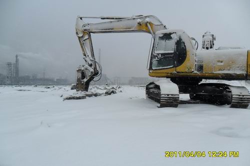 该项目部管理人员都是初次来到新疆,为了尽快溶入角色,在项目班子带动下,在很短的时间里积极主动与业主和BSEE协调沟通,针对施工现场A标段窄小的实际情况,项目班子未雨绸缪,积极筹划,为了挽回大雪、风沙、和蓝图未到所失去的时间,项目部制订了八项会议制度,利用三个晚上讨论总网络图计划,找出重点和难点,以热负荷试车为主线向后倒排工期,把每日每周的工作计划安排到时间节点。为抢时间,项目部一把手和管理人员每晚都上夜班,跟踪进度,为现场协调和解决出现的问题。项目部非常重视安全及文明施工工作,在现场加强安全防护,已经到现场的材料机具及时整理和规范摆放,加大对电缆、各种机具、车辆等设备的检验和维护,做好8米的深基坑的防护措施。对办公区施工区加固各种围挡,降低围档高度,配电房等屋顶增加砖块重物和钢管固定,确保人员、财物安全。在做好安全工作的同时,项目部合理安排施工计划,加班加点完成当天任务。