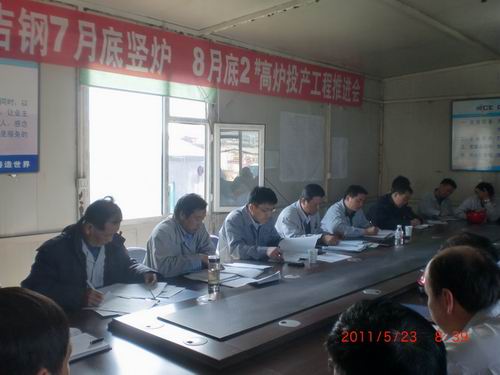 唐经理强调了确保竖炉7月底、2号高炉8月底投产对十七冶今后参与建龙集团建设的重要性,要求项目部进一步加强项目管理,各参建单位必须按项目部制定的网络节点,确保两个项目按期竣工投产。与会的参建单位主管作了表态发言,并同公司和项目部签订了责任状;项目经理时华钢表示,要通过这次推进会,进一步掀起大干的高潮,把各项工作做得更细更好,为竖炉和二号高炉按期投产奋力拼搏。