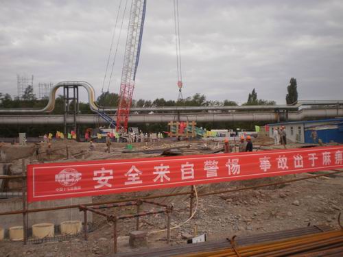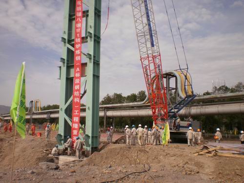 上午10点18分,新疆十七冶150t转炉工地现场鞭炮齐鸣,在业主分管领导、BSEE、十七冶、五冶、宝钢钢构等管理人员的列队观摹下,32吨的厂房钢柱在180吨的吊车牵引下,稳稳的安插在K列五线基础杯口内,这是宝钢钢构正式安装的开始,是十七冶确保5月31日主厂房具备钢结构框架安装条件的一个重大节点,为保7月31日290t行车安装节点赢得了时间。在过去的一个月中,新疆八一钢铁150t项目部领导非常重视第一个大节点的安排,在人、财、物上给予全面支持,严把安全质量关,从技术、钢材料、机械和后勤服务多方面,为土建施工单位提供方便,该节点的按期吊装为后期工程奠定了基础。