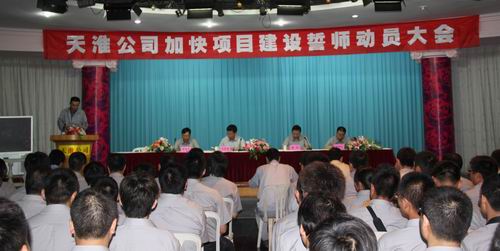 天淮公司董事长伍家强提出:希望各施工单位团结一心,克服困难,确保10月31日热负荷试车。