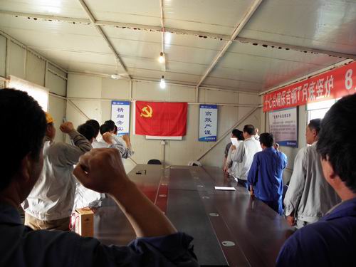 6月29日下午,十七冶吉钢项目部党工委,组织项目部党员认真学习十七冶集团公司董事长、党委书记王建国在公司年中工作会议上的讲话,并回顾了建党90年的光辉历程,特别是改革开放30多年的丰硕成果,使参加活动的党员,进一步明确了企业当前的形势、任务以及党员的责任。项目部党支部要求共产党员,在吉钢建设工程中,以自己的先锋模范作用,带领身边的群众,为二号高炉和竖炉工程按期交工作贡献。在重温入党誓词时,无论是入党40多年的老党员,还是刚参加工作的年轻党员,都庄严的举起右手向党旗进行宣誓。党建纪念活动使每个党员受到了一次深刻的党性观念的提升,一次形势、任务的教育,一次党员先锋模范作用的检查。