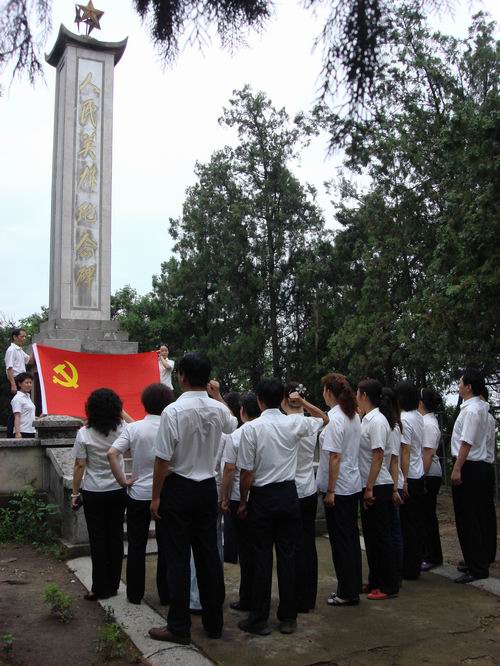 党员们参观了和县革命烈士纪念馆,一幅幅生动的照片、一个个真实的故事、一件件饱经风霜的遗物,加上讲解员系统而又深情的解说,全面生动的再现了当年战斗的整个过程,给全体党员上了一堂生动的革命传统教育课。在西凉山人民英雄纪念碑前,面对党旗,党员们举起右手,紧握拳头,庄严宣誓。