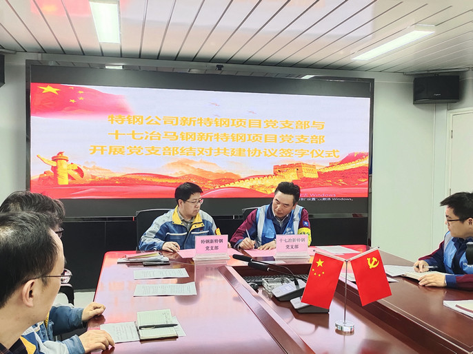 双方首先共同学习了“共建方案”,共同签署共建协议及施工方廉洁承诺书。十七冶马钢新特钢项目部党支部书记表示十七冶项目党支部会通过共建活动进一步树立全局意识、服务意识,积极支持、配合特钢公司党支部的工作,努力构建新格局,形成推进党建与思想政治工作的合力。其次注重时事学习,提高党性修养,建设“学习型”党支部,与业主党支部加强联动互通,通过支部共建、班子共促、队伍共抓、工作共动达到荣誉共享、业绩共创的目的。