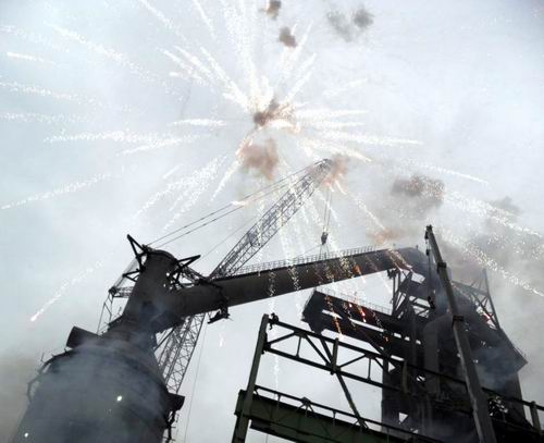 9月20日下午5点49分,新钢8#高炉施工现场,鞭炮齐鸣,烟花璀璨,由十七冶冶金公司承建的新钢8#高炉工程下降管自5点13分起吊至吊装就位,历时36分钟,顺利吊装完毕,标志着该工程大型钢构件吊装全部结束。