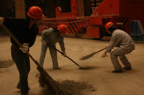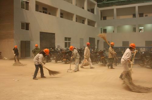 冒着濛濛细雨,带着饱满的热情大家开始了积极认真的清扫工作。清扫前,大家接受了现场安全教育。清扫队伍分为2个小组,大家拿着铁锹、扫把,对现场的破旧木板,废弃铁块等进行分类整理,同时清扫了现场的施工垃圾,甚至于用手清理了钢结构缝隙里的灰尘,“今天的灰尘就是明天试车工作道路上的绊脚石”,大家仔细的对每一处灰尘都进行了清扫。