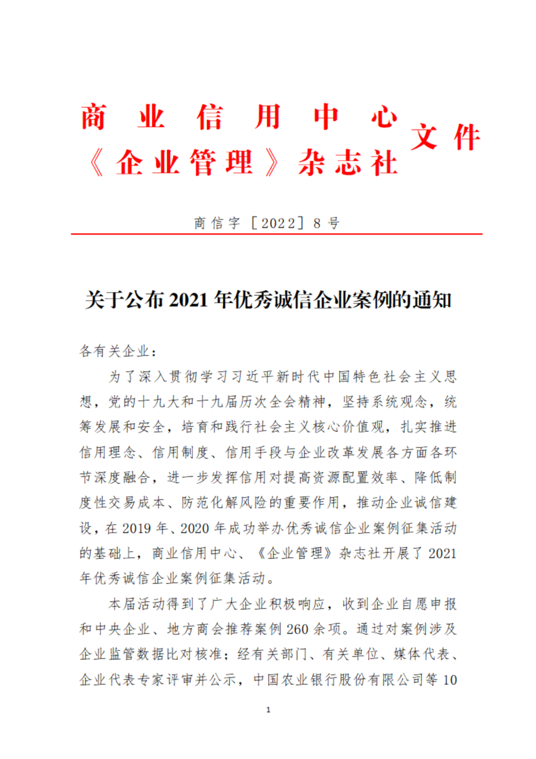 此次评选由商业信用中心(国务院国有资产监督管理委员会主办的国家级企业信用等级评价事业单位)联合《企业管理》杂志(由国务院国有资产监督管理委员会主管,中国企业联合会主办的中央级权威经济期刊)共同主办。通过对案例涉及企业监管数据比对核准,经有关部门、有关单位、媒体代表、企业代表专家评审并公示后,从全国260余项案例中,评选出20项最佳诚信企业案例和118位企业诚信建设突出贡献人物。