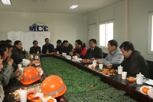 马钢四钢轧项目部负责人以及参建的各工程处负责人与两位领导共聚一堂,轻松地交谈着,欢声笑语中范经理不忘叮嘱大家:新的一年,要特别注意抓好分包队伍的管理和培养,要使他们真正融入我们的这个大家庭,这样才能真正发展壮大我们冶金公司。周书记也仔细询问了各工程处新的一年的生产任务,要求大家势必切实抓好安全生产。