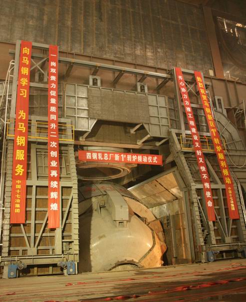 3月23日下午1点58分,伴随着震耳欲聋的鞭炮声,由十七冶冶金工程技术公司承建的马钢新区四钢轧1号300t转炉顺利倾动,马钢集团公司副总经理高海建;马钢集团公司常委、四钢轧总厂厂长蒋育翔;十七冶集团公司总经理助理王青山;十七冶冶金工程技术公司经理范文刚以及马钢项目部负责人共同见证了这一重要时刻!