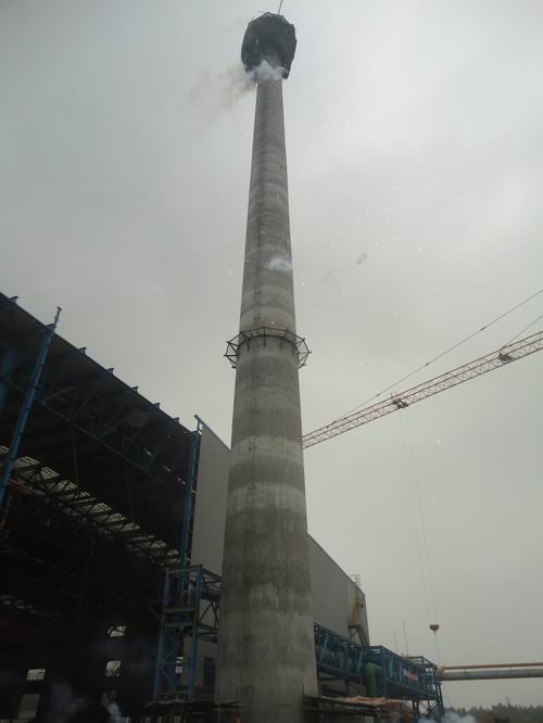 5月13日下午3时,江苏天淮无缝钢管工程回火炉烟囱成功封顶,标志着天淮工程热处理区土建施工进入最后冲刺阶段。