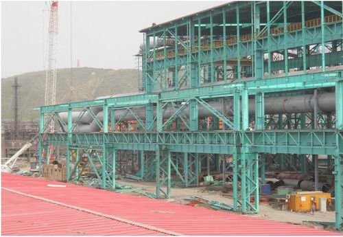 二、三次除尘管道是整个除尘系统中管道直径最大的,分别为φ3.4m和φ3.8m,由K列9线到19线,总长分别为 260m和240m,总重分别为240t和300t;除尘管道支架ZJ-1~ZJ-9总重约200t。在近一个月的时间内,结构处在项目部的统一安排和指挥下,合理组织、精细安排,将施工任务层层细化分解,使每一天的工作量最大化。全体参战人员发扬“高效严谨,精细务实”的企业作风,全力以赴拼抢除尘管道,使工期按项目部要求提前5天完成。