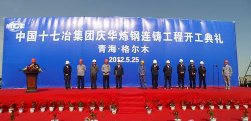 5月25日上午9点58分,中国十七冶集团公司承建的青海庆华炼钢连铸工程举行了隆重的开工典礼。中国十七冶集团公司副总经理唐灶荣、庆华集团格尔木钢铁指挥部副总指挥唐勇、冶金工程技术公司党委书记周美初等领导出席了开工典礼。