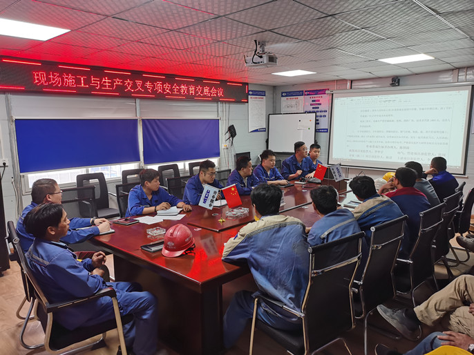 为提高全体管理及施工人员的安全意识,减少安全风险,项目部通过项目经理部内部安全教育会、现场施工单位负责人及安全管理人员安全交底会、全体工作人员安全大会以及分专业分区域施工人员安全专题会等一系列安全教育活动,同时通过强化健全工作票制度、现场引导上下班安全通道等工作,将安全理念宣贯到位,铭刻于心。