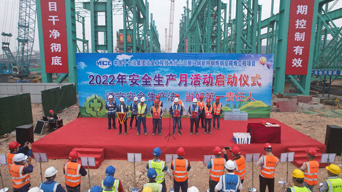 6月1日,中国十七冶集团冶金工程技术分公司在马鞍山钢铁股份有限公司新特钢项目举行了“安全生产月”活动启动仪式。分公司经理张鸿羽、党委书记陈鑫慧及机关各部门负责人等参加了仪式。