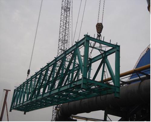 心怀全局,于局部精雕细琢,分秒之内、方寸之间。在南区高炉工程的施工中,为节省吊车台班,项目经理吴晴冬带领项目部的技术人员,反复研究论证,开创采用150T履带吊整体完成高炉吊装的先河,大大缩短了300T履带吊的使用时间,为3座1580 m³高炉系统建安工程节省了近百万元的成本。高炉通廊吊装历来都是工程的难点,其战线长、吨位大、吊装高度高,特别是9号、10号高炉中通廊吊装,跨越了循环水泵房和喷煤,根本无法就地组对吊装。“精雕细琢”,这是中天项目部的艺术吊装,一次次丈量、反复计算、多次论证,最终确定采用履带吊台吊这一最为安全、经济、快捷的方法,在跨越喷煤通廊再离吊装场地50米开外的运河边组对好,晚上加班铺设好吊机行走道路,利用300T和150T吊车施工的间隙,行走抬通廊支架,完成安装。业主方称赞的同时,同行也纷纷跑来学习,此项技术还获得了十七冶集团科技进步奖。