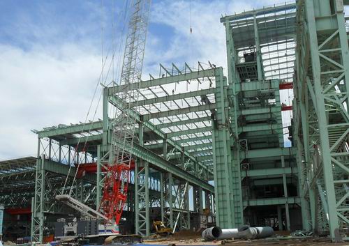 自2011年12月8日主厂房钢结构安装工程开工以来,CD跨屋面同一次除尘管道交叉作业,工期紧任务重,在项目部精细化管理和大力支持下,冶金工程技术公司机装一处组织精兵强将,合理安排,精心组织,顺利完成业主及项目部制定的各个施工节点。在施工过程中,机装一处现场全体人员充分发扬十七冶人艰苦奋斗的精神,克服高温和沙尘暴的干扰,提前完成主厂房屋面封顶。