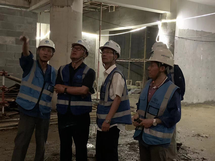 在现场,陈书记首先对现场的防暑降温药品进行了逐一检查,包括合格证和保质期以及里面所含的成分。随后陈书记检查了三馆现场开槽配管进度和施工质量,听取了安装管理部关于安装工程的后续安排,要求在保安全、保质量的前提下,分楼层分区域进行安装,确保项目工期。