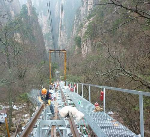 3月11日,由机装三处施工的黄山西海大峡谷观光缆车工程轨道焊接工作开始并井然有序的进行着。