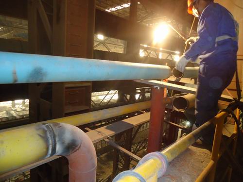 3月12日,由冶金工程技术公司承建的马钢新区四钢轧“双炉双机”能介管网安装调试任务顺利完成。 该工程为氧气、低压氮、中压氮、高焦、混合煤气、氩气管道新建改造项目,共有24个施工点,管道跨距80米,大部分施工点都在25米以上,工作量大,同时业主规定转炉停产检修的时间只有一天,很大程度上增加了施工难度。为确保安全,管道二处要求每个施工点都有安全员监护并配置灭火器,施工人员配带相应介质的警报器,提前15天进行管道预制吊装、跳板搭设、支架吊装及工机具的准备工作, 经过21小时的连续奋战下,保质保量的完成此次“双炉双机” 能介管网安装调试任务,赢得了业主对十七冶的好评,以实际行动响应公司“树正气、讲责任、比贡献”活动。