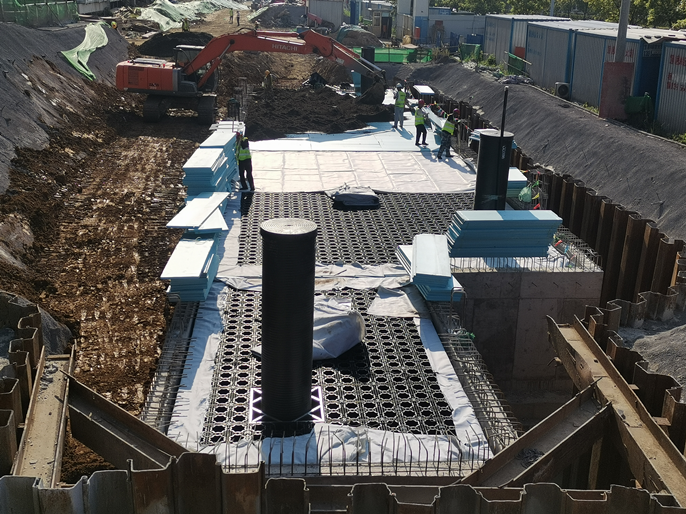 8月10日,由中国十七冶集团有限公司冶金工程技术分公司承建的集成电路标准化厂房二期项目室外工程,顺利完成500立方米雨水收集池模块安装任务,并完成隐蔽验收工作,为后续道路施工争取了宝贵时间。