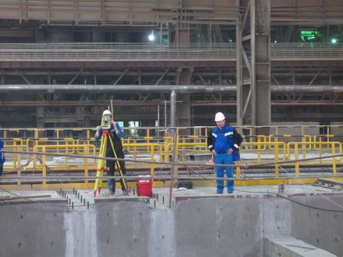 马钢1650mm板坯连铸机由奥钢联总设计马鞍山工程技术公司参与,奥钢联专家采用国外先进的测量仪器对整个大包回转台中心线、标高以及铸机中心线和浇铸中心线、扇形段基础框架底座中心线、水平度进行了全面复测和验收,达到一次灌浆要求,此次验收成功为后期设备安装提供了有利的保证。
