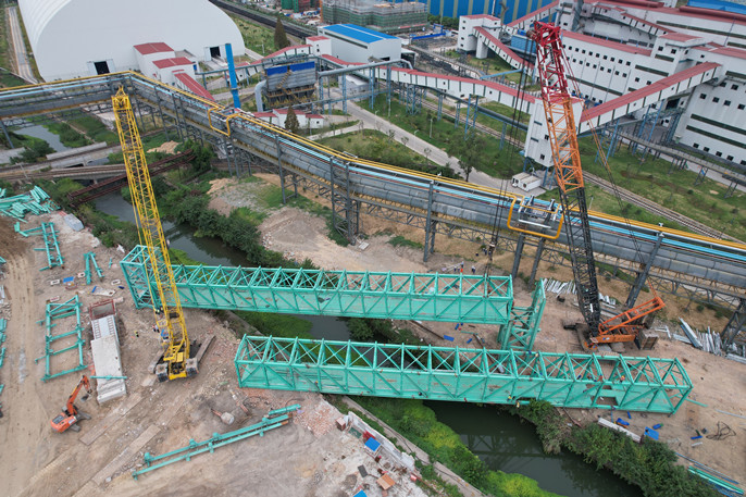 8月24日,由中国十七冶集团冶金工程技术分公司承建的马钢新特钢项目首跨河通廊顺利吊装完成。