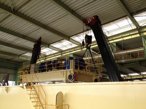 4月26日上午,由十七冶冶金工程技术公司承建的上海梅山1780mm热轧产线设施完善项目2#板坯搬运车间35t+35t行车顺利完成吊装工作。
