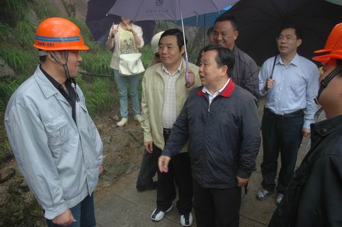 6月11日上午,黄山市委书记王福宏、市委常委黄山风景区管理委员会书记许继伟、黄山风景区旅游发展股份有限公司总裁叶正军等一行,冒雨来到黄山西海观光缆车工程上客站视察工作。