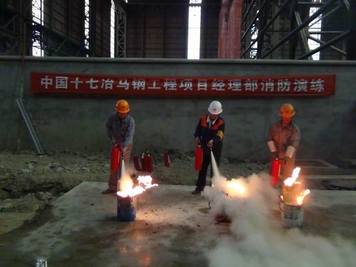 下午2点30分,马钢工程项目部四钢轧连铸厂房工地现场,一场消防演练拉开序幕,随着消防演练命令的下达,象征着火警的三堆熊熊燃烧的火焰,顿时被8台灭火器喷击熄灭,演练过程干净利落,消防演练取得满成功。通过实战演练,锻炼了员工处事不惊,果断有序处置火警的能力。
