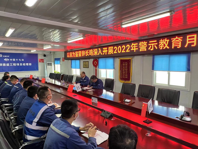 9月22日下午,中国十七冶集团冶金分公司纪委书记、工会主席韩斯明一行到宝钢德盛工程项目开展“以案为鉴、警钟长鸣”警示教育月活动。