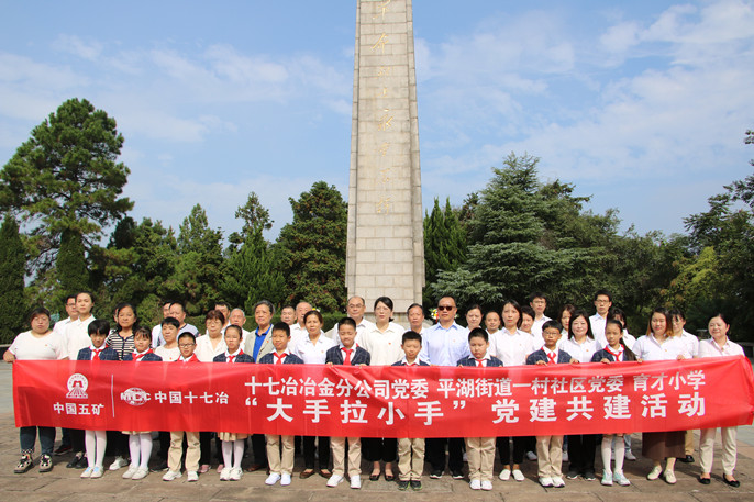 在新中国成立73周年和国家第9个烈士纪念日到来之际,为进一步增强党员意识,激励党员干部坚定理想信念,更好地发挥党员先锋模范作用。9月29日上午,中国十七冶集团冶金工程技术分公司党委联合平湖街道一村社区党委、育才小学共计40余人共同前往濮塘烈士陵园开展“大手拉小手”党建共建活动,深切缅怀革命先烈的丰功伟绩、寄托对革命先烈的无限哀思、颂扬革命先烈的崇高精神。