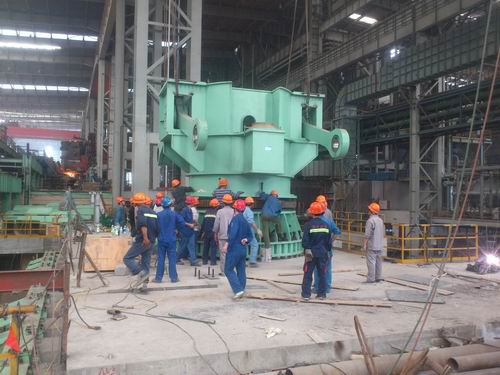 1#连铸机安装工程为十七冶在芜湖新兴铸管承接的第二台连铸机安装工程。该钢包回转台回转座重约50t,位于浇筑跨行车梁下部,吊装困难,冶金工程技术公司高度重视现场施工情况,项目部科学管理、合理安排,机装二处提前准备、精心组织,充分利用业主两台生产行车空隙时间,顺利完成吊装任务。