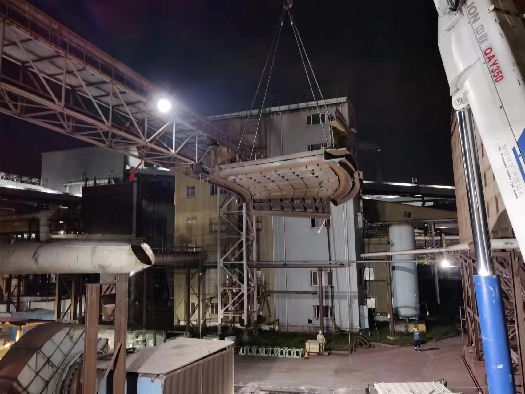 本项目为此次湛江钢铁炼铁厂2022年球团年修热区主要项目。项目主要内容为:环冷机变形的平台钢结构、承重钢结构更新;环冷机设备主机改造;环冷机排料控制;环冷机除尘器变形的中箱体、净气箱等更换;拆除原有环冷袋式除尘器变形中箱体、净气箱,对其进行整体更换;更换环冷袋式除尘配套的PLC柜、配电柜以及除尘器灰斗平面的照明和检修设备。此次项目工期紧、任务重,改造工序颇为繁琐,现场施工条件困难。为确保项目的顺利实施,本着“认真组织、精心准备、精准实施”的管理原则,项目部认真开展各项准备工作,在年修开始前两个月积极对项目进行全面规划,多次组织相关施工人员到施工现场考察,积极与业主单位讨论施工方案,不断优化、细化,提前对人力资源进行准备落实,避免突发疫情对人员调动的影响。